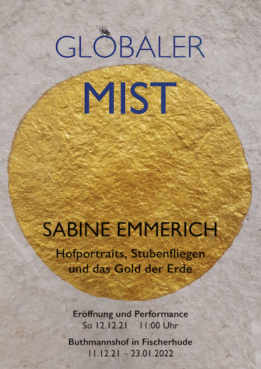 Damals waren die #Kühe noch auf der #Weide und deswegen gibt es, begleitend zu der Ausstellung, Wandarbeiten von goldenen #Kuhfladen und vielen #Stubenfliegen. Das Ziel von Sabine Emmerichs Idee ist es, dass möglichst viele Stubenfliegen die Ausstellung verlassen, um in unseren Wohnzimmern Platz zu nehmen, damit wir sie nicht vergessen. Und um auf den Wert des Kuhfladens aufmerksam zu machen (der ist nämlich gold wert).