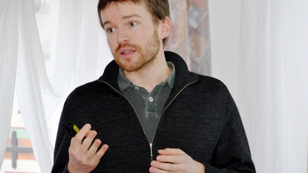„Biologen und Naturliebhaber haben die Veränderungen natürlich schon sehr viel länger bemerkt“, so Unterweger, der Biologie, Germanistik und Kunstgeschichte in Tübingen studiert und dort das Projekt „Initiative Bunte Wiese“ auf den Weg gebracht hat. Den Anstoß gab der Beginn der UN-Dekade für biologische Vielfalt vor neun Jahren, berichtete er den Zuhörern. „Der Kerngedanke war einfach“, sagte Unterberger, „wir haben den Rasen in Frage gestellt“. Seither wurden im Stadtgebiet Tübingen insgesamt 43 Rasenflächen in „Wiesen“ umgewandelt. Ohne Aufwand, denn: Wer seinen Rasen wachsen lässt und nur noch zwei Mal im Jahr mäht und dann das Schnittgut abräumt, hat ihm zufolge bereits etwas für die Insektenwelt getan. Die Anzahl von Wanzen, Wildbienen, Heuschrecken und Tagfaltern fällt auf einer Wiese im Vergleich zum Rasen jeweils deutlich höher aus. „Wir waren überrascht, dass wir mit einer so einfachen Maßnahme so viel Erfolg hatten“, so Unterweger.