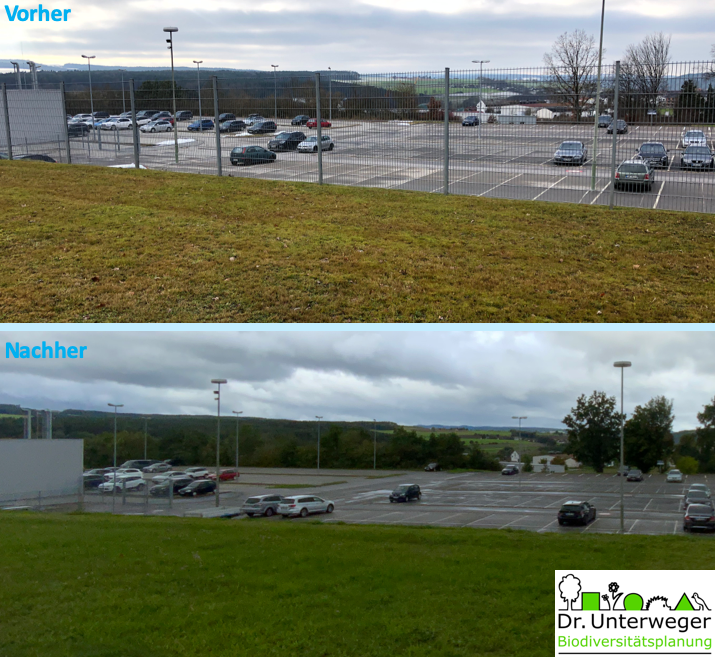 Zaunstreckenverkürzung. Plötzlich war das Panorama frei, die schicke Architektur der 60er kann wieder wirken und der Pausenbereichkann aufatmen. Verwaltung und Produktion rücken zusammen und zeigen auch optisch die gute und gelebte Unternehmenskultur. #Integration ist eben auch ein baulicher Aspekt. Erst jetzt können wir loslegen: Biodiversität, Betriebsgesundheit, Ernährung, Mobilität, Bäume und Schatten, Regenwasserrückhalt, PV…